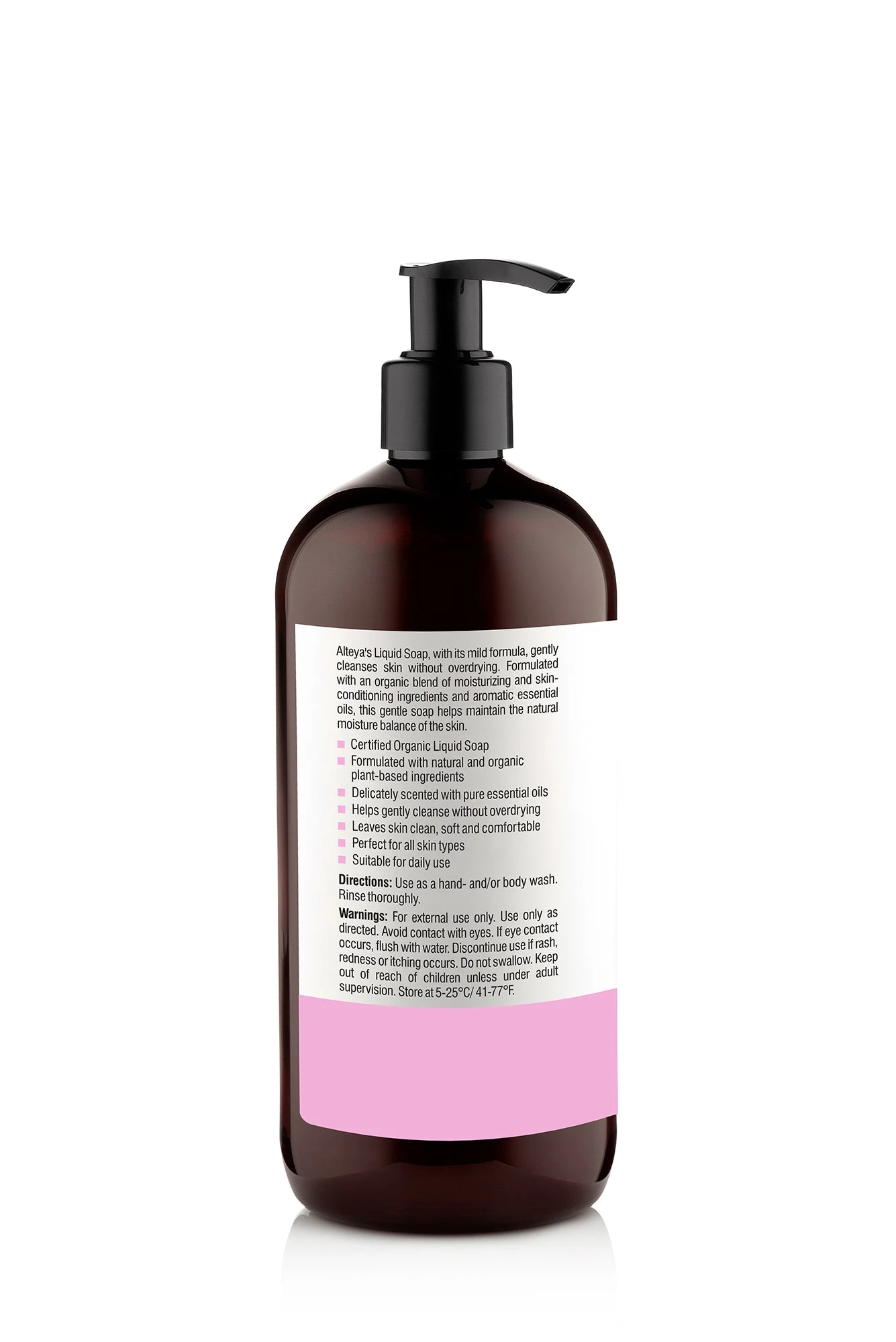 “The Alteya Organics Geranium Rose liquid soap is formulated with natural and organic plant-based ingredients and delicately scented with pure essential oils. It leaves skin clean, soft and comfortable and is perfect for all skin types and daily use. The s”