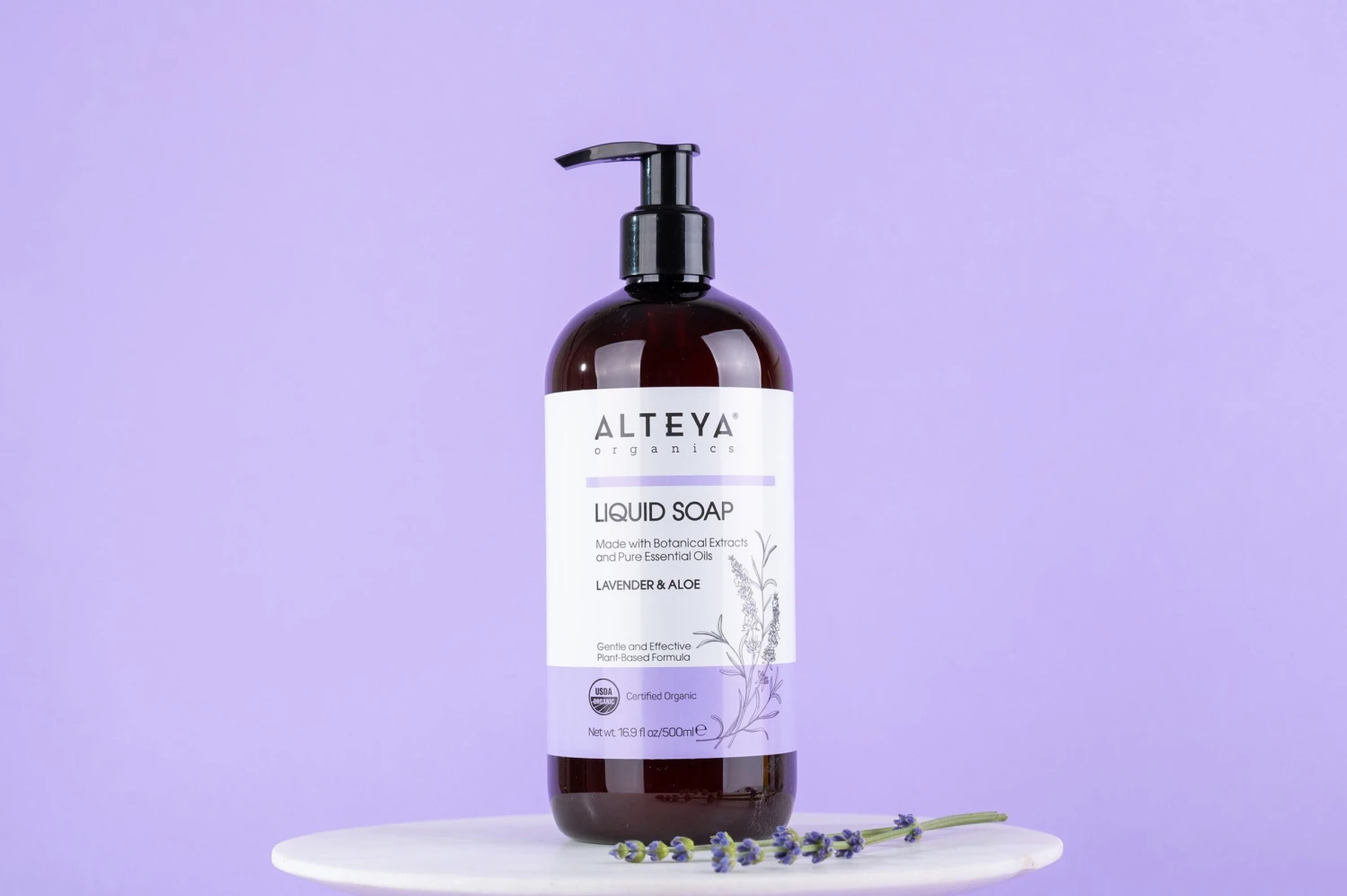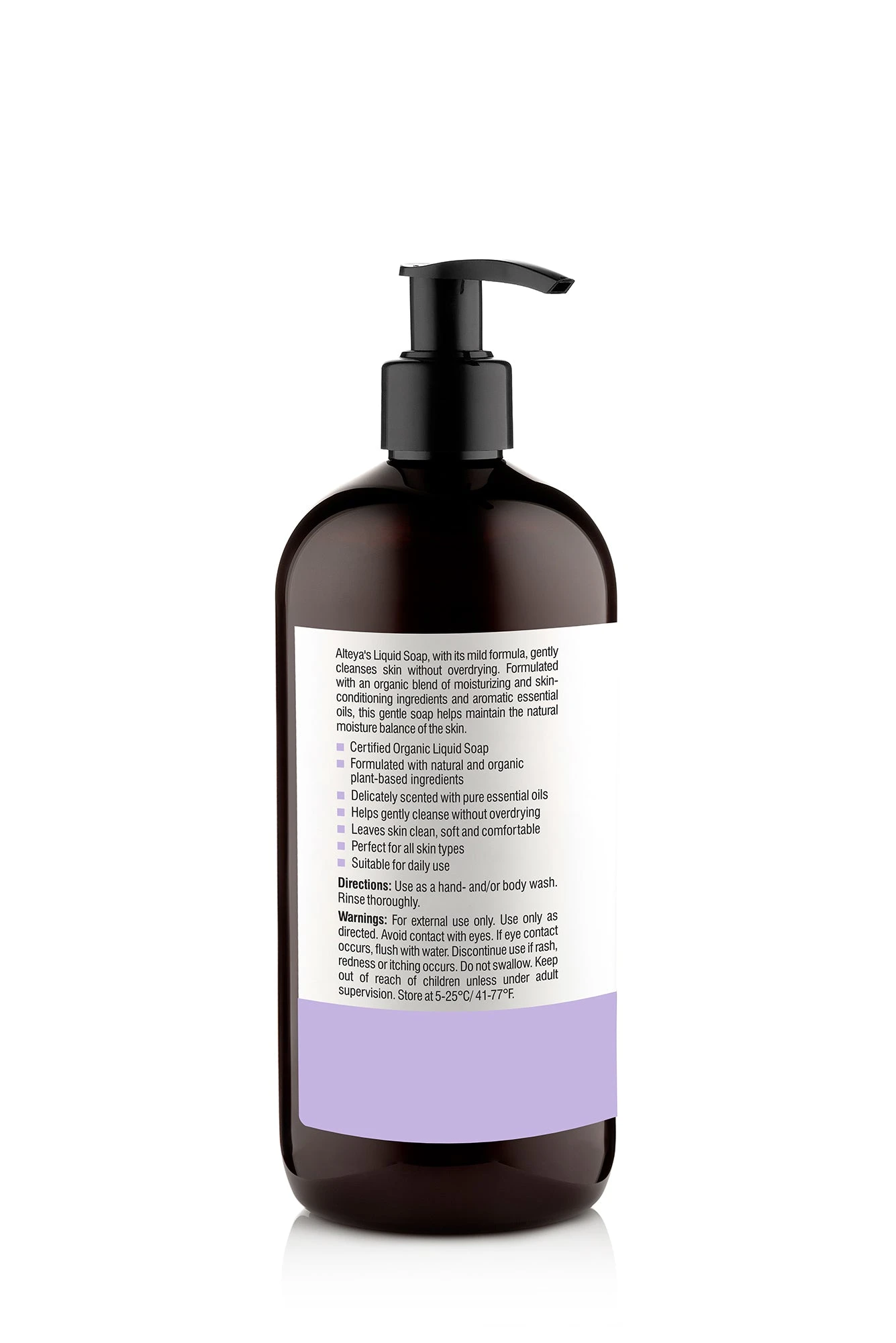 “The Alteya Organics Lavender and Aloe liquid soap is formulated with natural and organic plant-based ingredients and delicately scented with pure essential oils. It leaves skin clean, soft and comfortable and is perfect for all skin types and daily use. T”