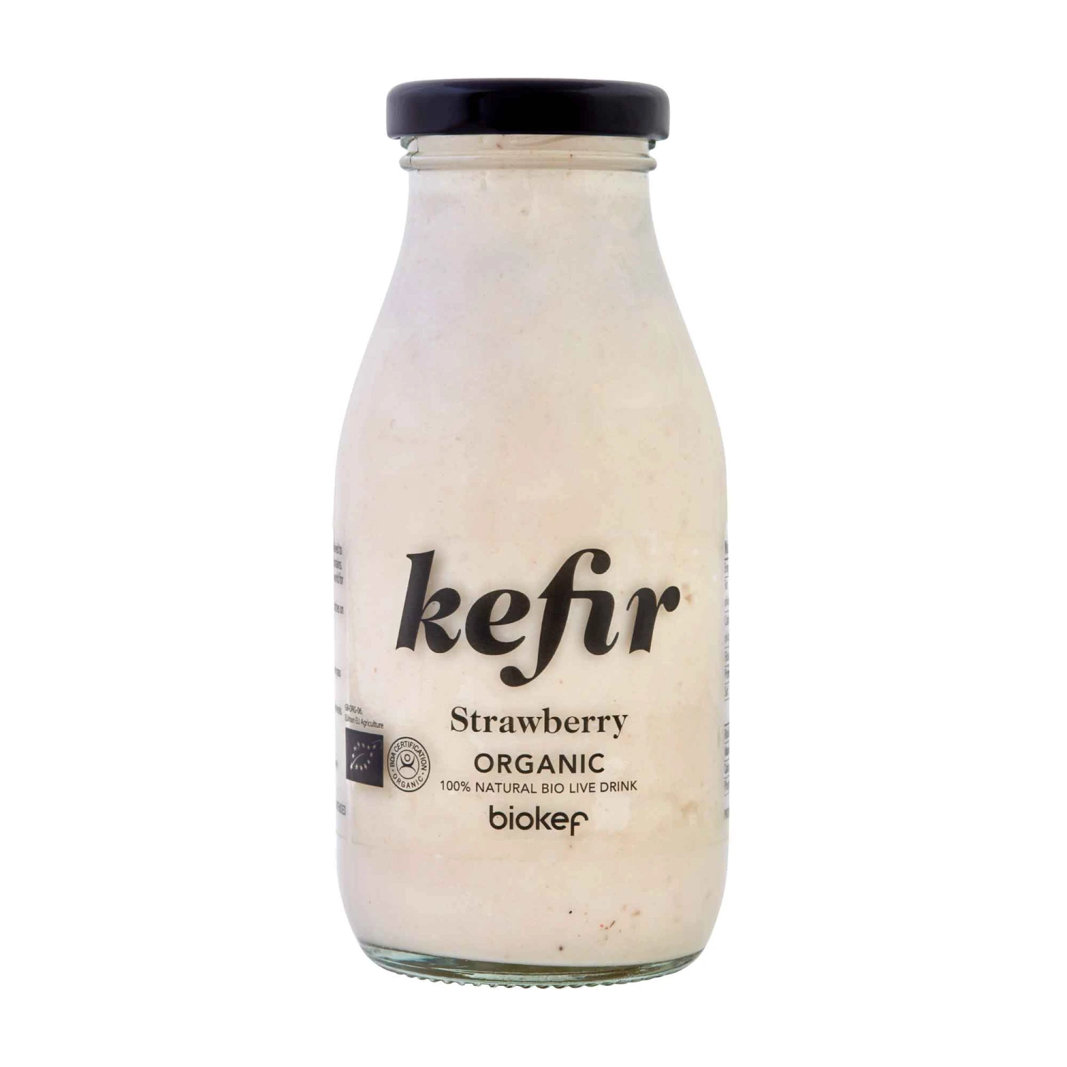 Delicious and nutritious natural kefir with a puree of real strawberries and dash of honey to add a little sweetness.
