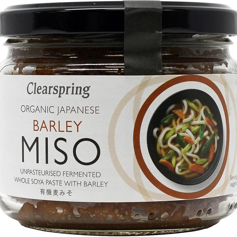 “Clearspring Organic Barley Miso is rich tasting and darkly coloured and makes an ideal savoury seasoning for soups, stews and sauces.