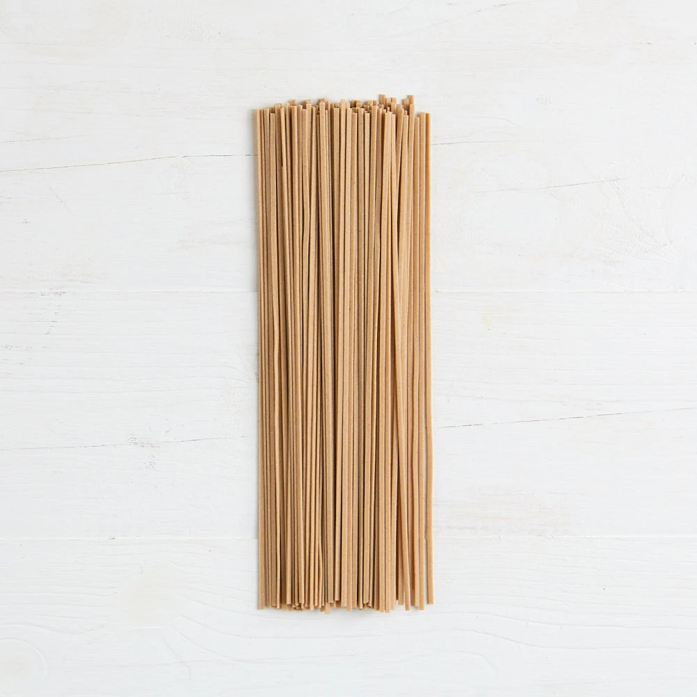 “Clearspring 100% Buckwheat Soba Noodles, also known as ‘juwari soba’, are traditional Japanese noodles made with only buckwheat flour. They are gluten free and deliver a delicate nutty flavour with a very distinctive texture.Made by a third-generation artisanal family producer, who has been dedicated to creating traditionally made, premium quality noodles since 1973. As buckwheat does not contain any gluten or binding agents, it requires great skill and time to produce these popular noodles, a skill Clearspring producer has developed over the decades in Japan’s Nagano prefecture, a region celebrated for creating the very best 100% buckwheat flour noodles. The buckwheat is carefully milled to create a fine buckwheat flour, which is then made into a dough using specialist equipment and importantly, the expert knowledge and craftsmanship of the producer to get the consistency just right. Once formed into noodle strands, they are traditionally air-dried, sometimes for up to a week. The drying process is one of the secrets to the great taste and texture of these noodles, which have an added springiness (known as “koshi” in Japan).They perfectly absorb the flavour of the seasonings, broths or dressings in which they are cooked or served and can be ready in just five minutes. You can enjoy them hot or chilled in dashi, with a dipping sauce or in a wide variety of stir-fry and salad recipes. “