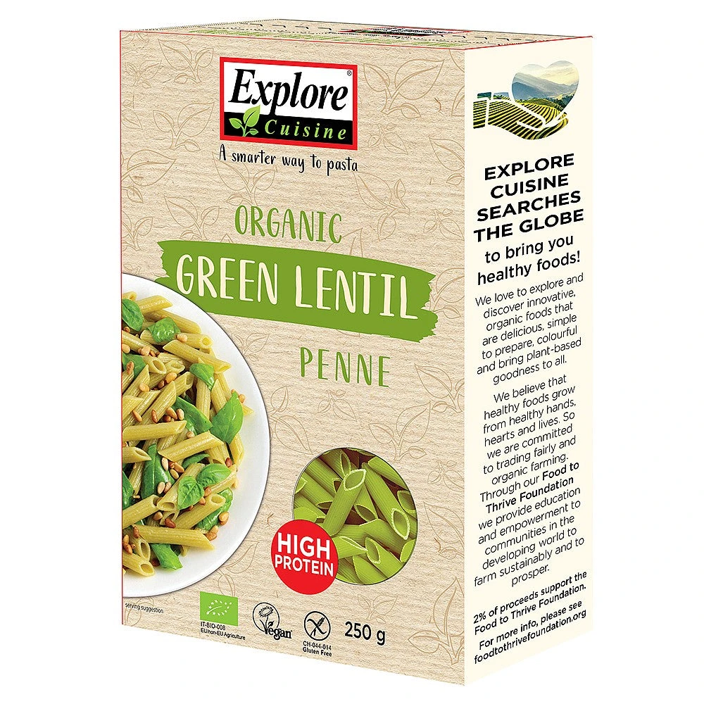 “Firm and flavorful, our Green Lentil Penne has a delightful taste and tender texture. Easily prepared, it provides exceptional savour and color to your everyday meal.”