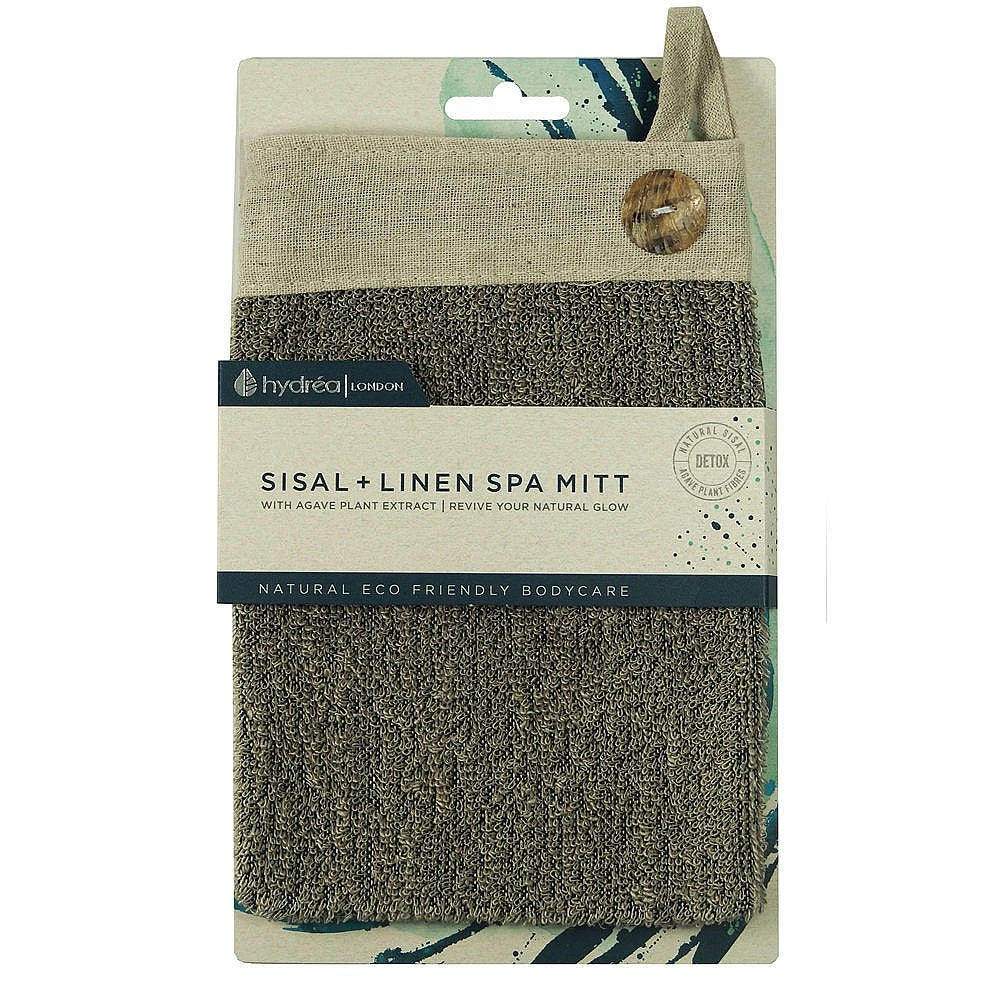 “Hydrea luxurious Spa Mitt is carefully crafted and woven with Sisal, a natural, non-static fibre which is extracted from the leaves of the Agave Plant, blended this with pure, unbleached linen for a deep cleansing but gentle exfoliating experience resulting in smoother, fresher and brighter skin, leaving you feeling naturally revitalised and refreshed. Use in the bath or shower with your favourite cleansing product. Wet the Mitt and massage in circular motions towards the heart to remove dead skin cells, unblock pores, improve skin tone, encourage cell rejuvenation, help to reduce cellulite and fight off blemishes. Do not use on sensitive areas or broken skin.”