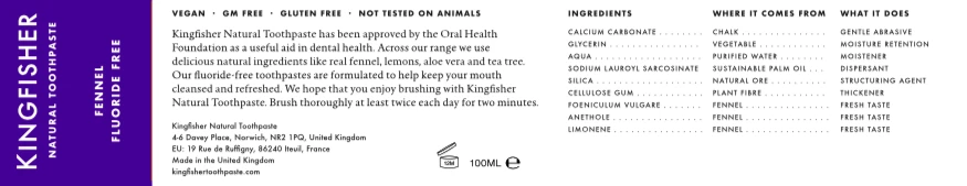 Kingfisher Natural Toothpaste Fennel Fluoride Free 100ml