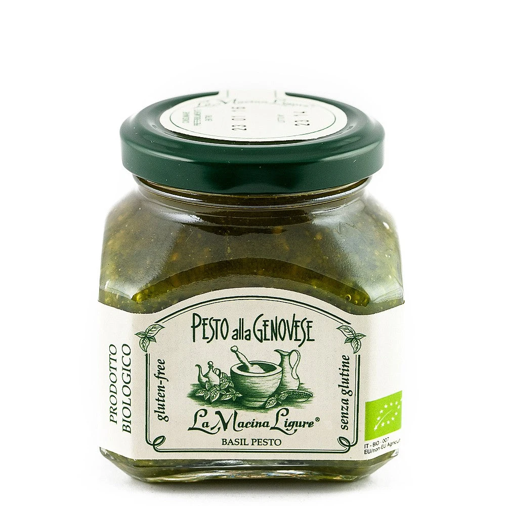“Basil Pesto is prepared according to an ancient recipe from the Ligurian country home cooking, only with Ligurian fresh basil; for this reason it has an appetizing and pleasant smell, and its taste is really excellent. This Pesto is characterized by a creamy texture, a bright green colour, an intense fresh basil fragrance and a well-balanced taste. An excellent sauce for pasta, may also be used on canaps, pizza, boiled vegetables and meat, or to enrich soups.”