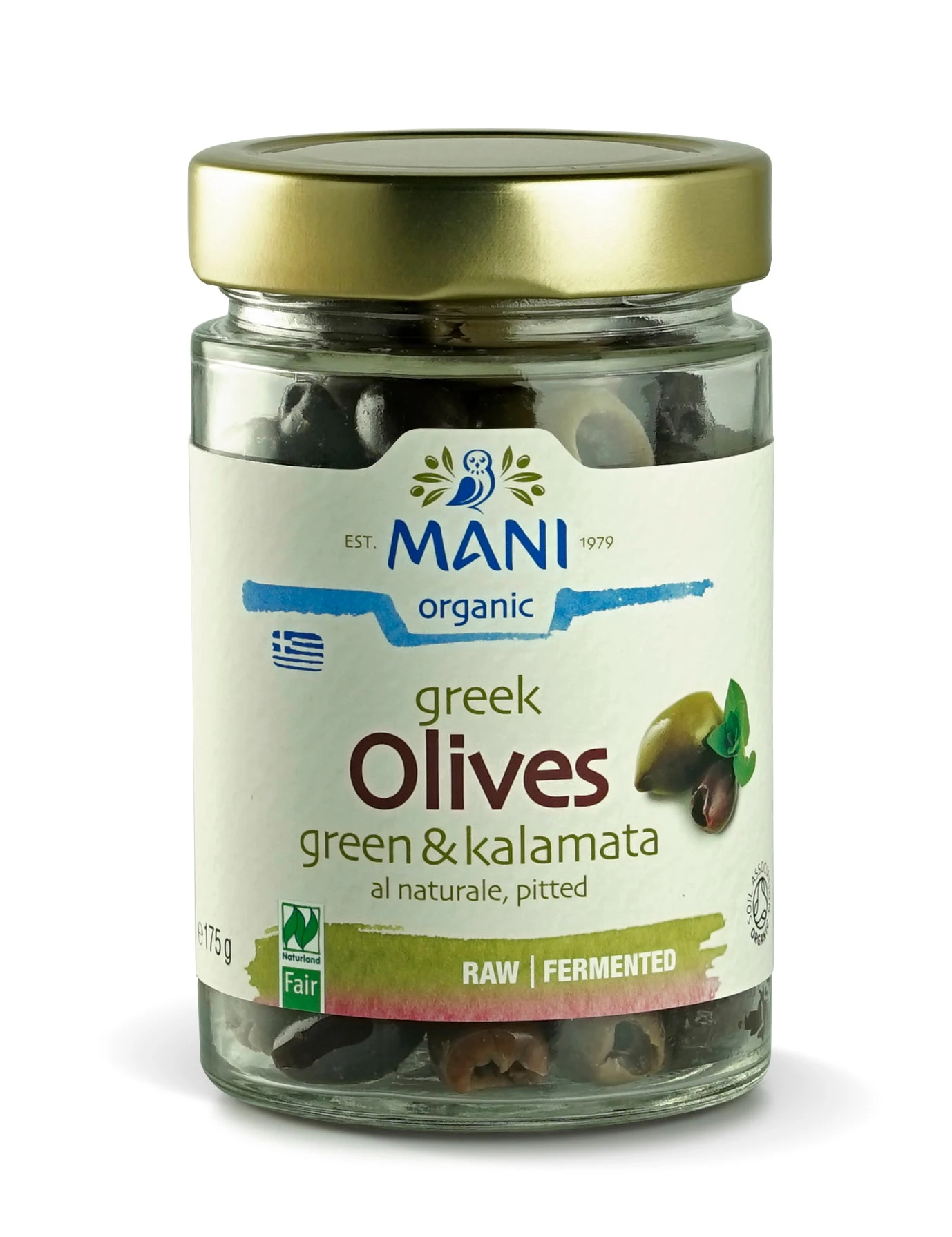 “The best of both: a mix of fruity Kalamata and spicy green Konservoeliá olives. The olives once harvested by hand, are naturally cured for six months and marinated in MANI extra virgin olive oil and aromatic oregano. Pairs perfectly with goats’ cheese, ripe tomatoes and Greek feta.”
