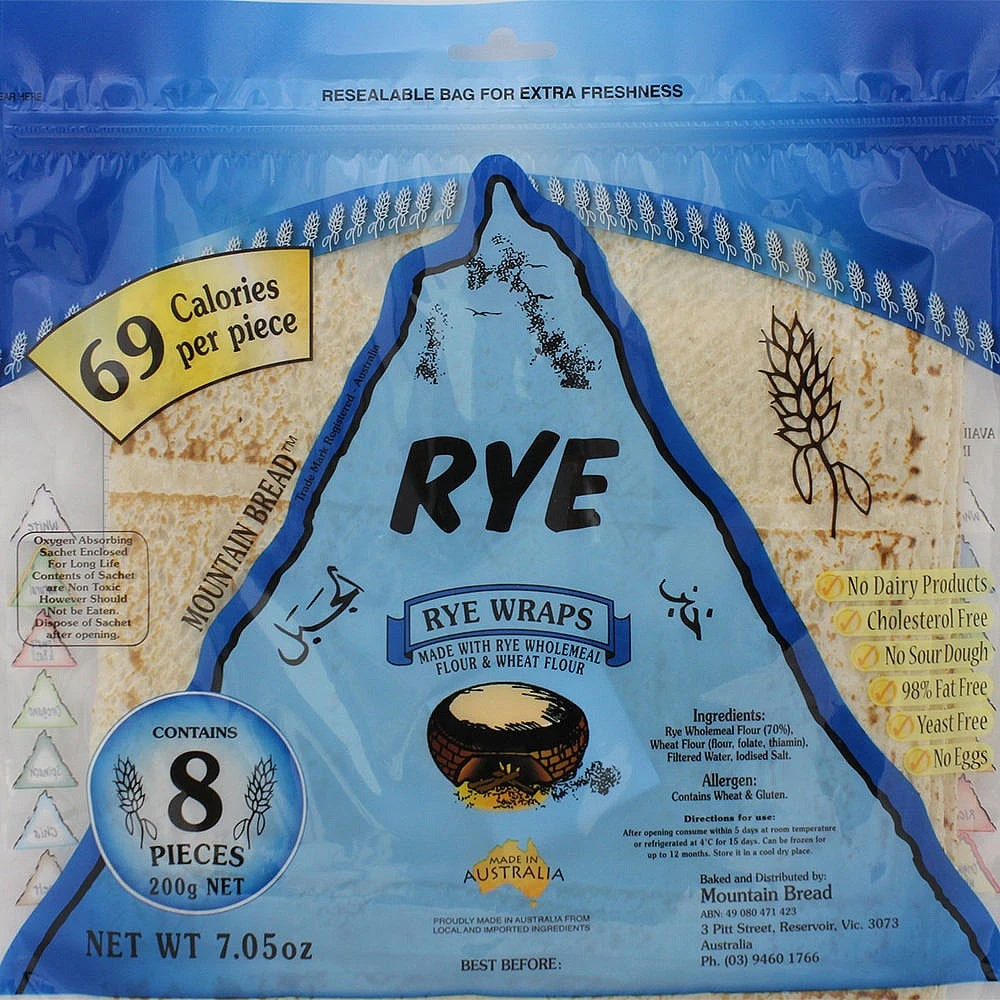 “Paper thin authentic middle eastern wraps. No yeast, No dairy, no oils, no added sugar. 70% Rye, 30% wheat. All wraps have gluten.”