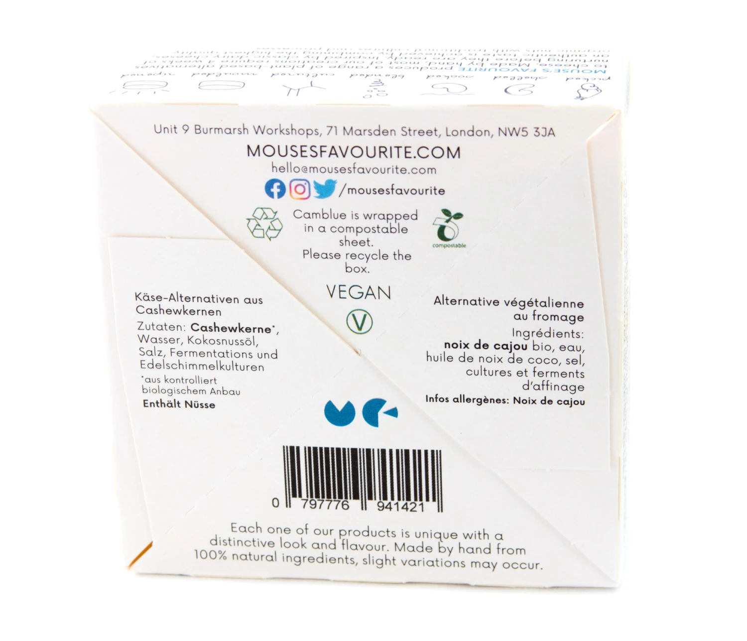 “Camblue is cashew based and looks like camembert. Only when you cut it open will you discover its mild, blue interior.”