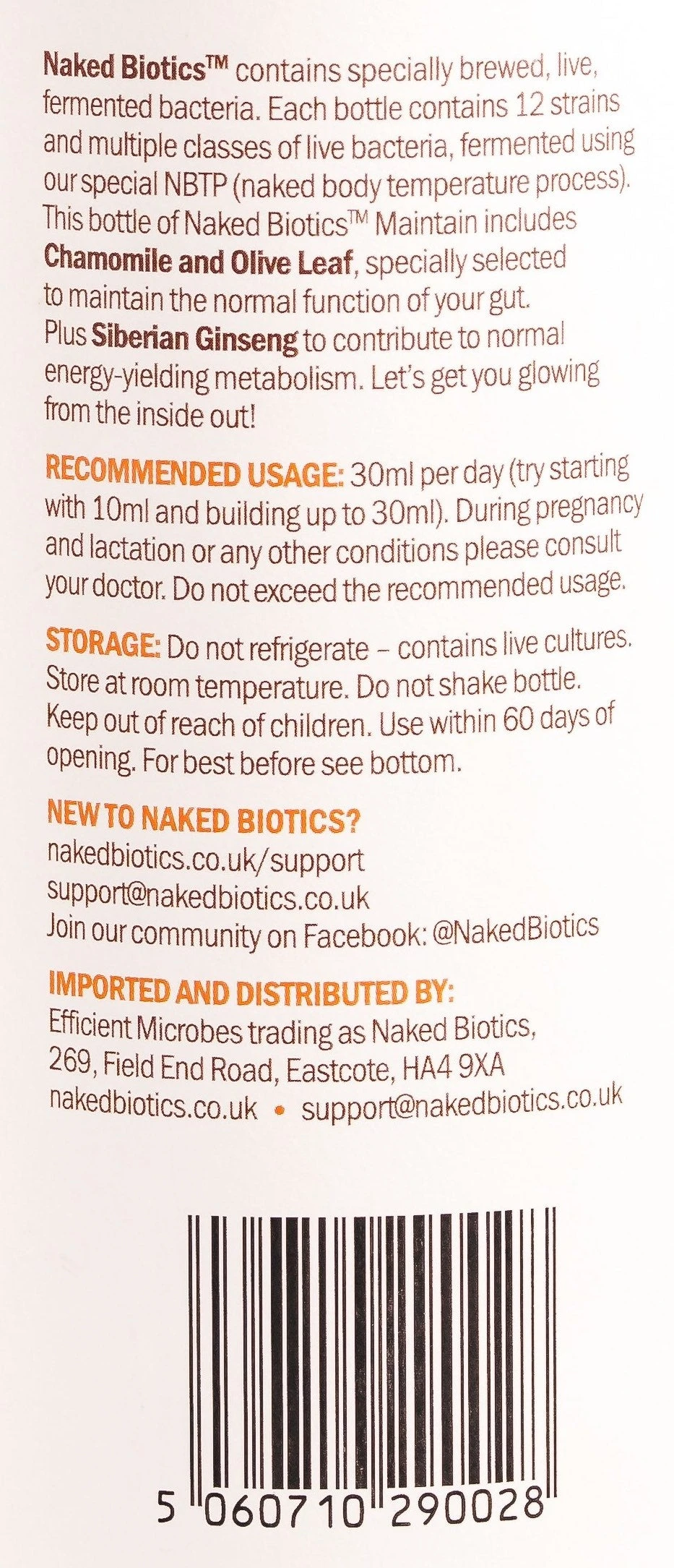“Naked Biotics Daily Maintain is a liquid probiotic shot that contains specially brewed, live bacteria and selected botanicals, for supporting a normal immune system. Each bottle contains 12 strains and multiple classes of bacteria that have been fermented for 21 days. The bacteria in Naked Biotics are strong, adaptable and able to reach the digestive system alive. Naked Biotics Daily Maintain promotes general well-being. Every single dose is bursting with goodness.”