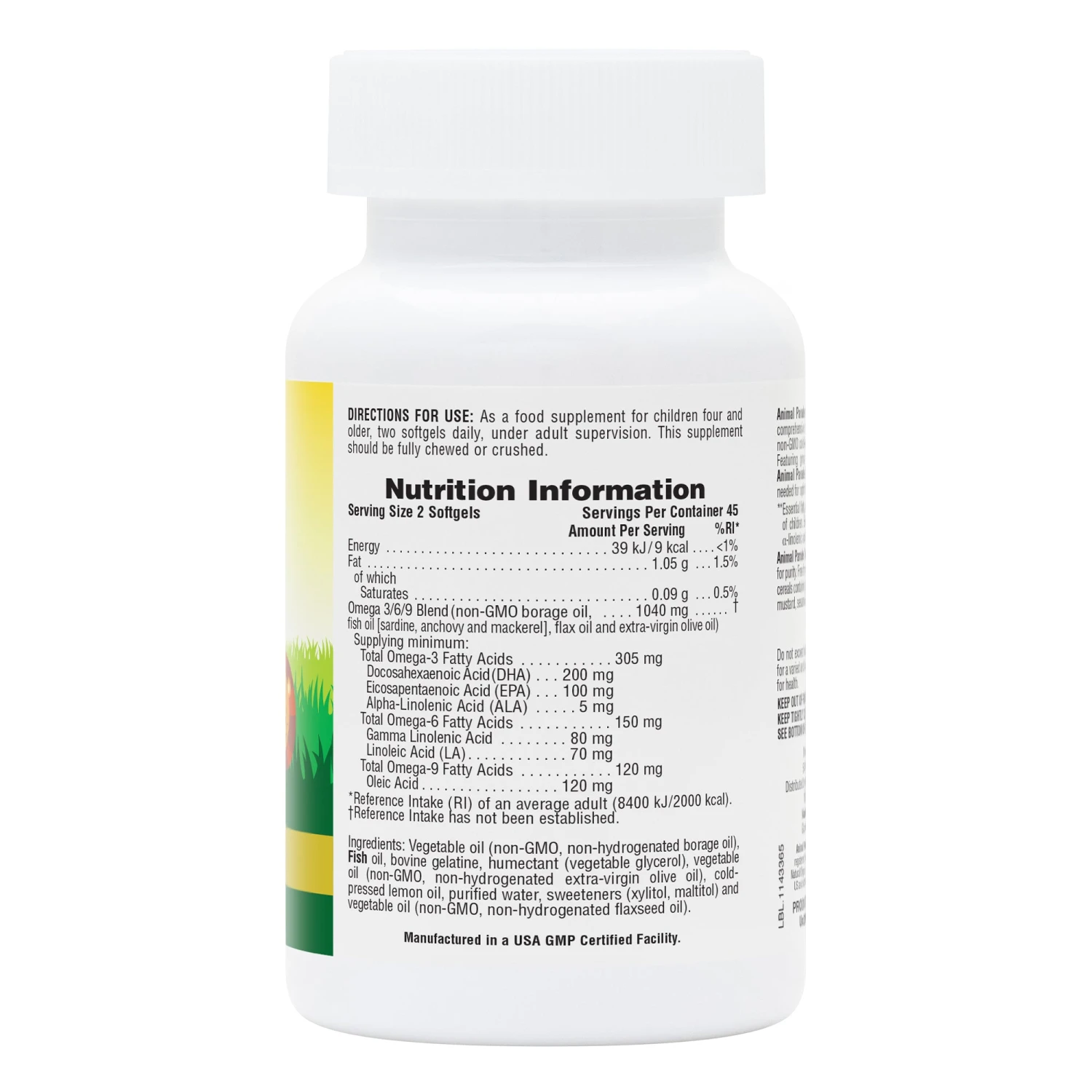 Featuring great lemon taste inside and out, and easy-to-swallow softgel delivery, Animal Parade Omega 3/6/9 Junior Softgels builds a strong nutritional foundation for kids’ healthy growth and development with superior quality omega-3, omega-6 and omega-9