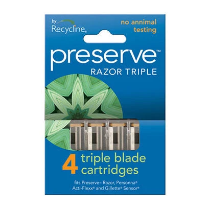 “Titanium coated triple blades with Vitamin E and Aloe lubricating strip offer a clean, close shave.”