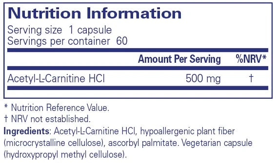 Pure Encapsulations Acetyl-L-Carnitine 500 Mg 60 Caps