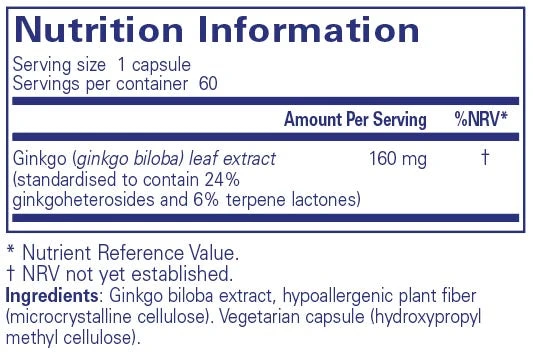 Ginkgo 50 160 mg is high quality plant extract providing guaranteed levels of active phytonutrients. Pure Encapsulations ginkgo leaf extract is standardized to contain 24% ginkgoheterosides and 6% terpene lactones.