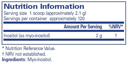 “Inositol Powder features myo-inositol, the primary form of inositol used in clinical research. Each scoop provides 2 g which is a dose consistent with clinical use and not easily achievable with capsules. Highly soluble, pleasant tasting, pure and additive-free inositol that mixes well into water for convenient use. “