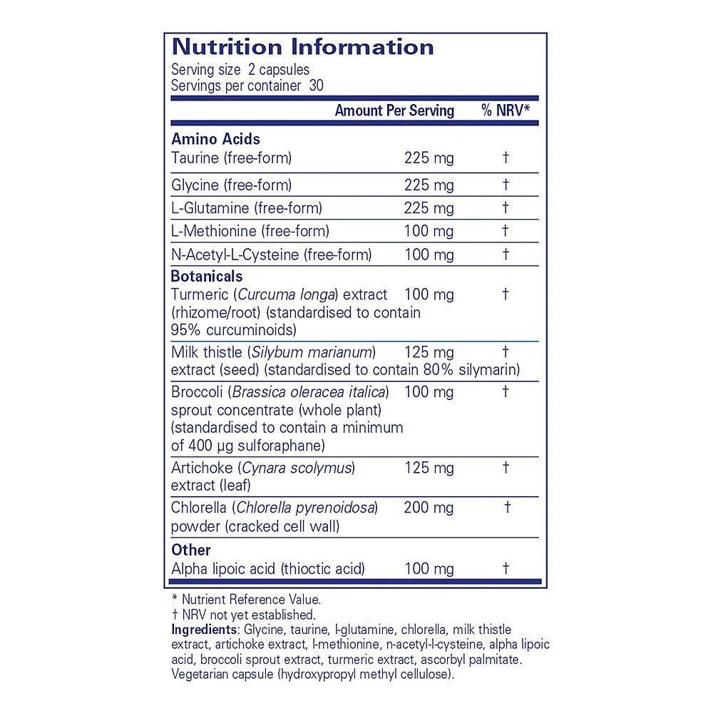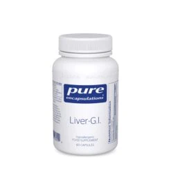 “Liver-G.I. provides a comprehensive blend of phytonutrients and nutritional factors. Featuring N–acetyl–l–cysteine and alpha lipoic. With milk thistle and turmeric extracts as well as broccoli sprout extract standardized to sulforaphane. Provides the amino acids glutamine, glycine, taurine and methionine. Also, featuring chlorella, the most studied “green super food.””
