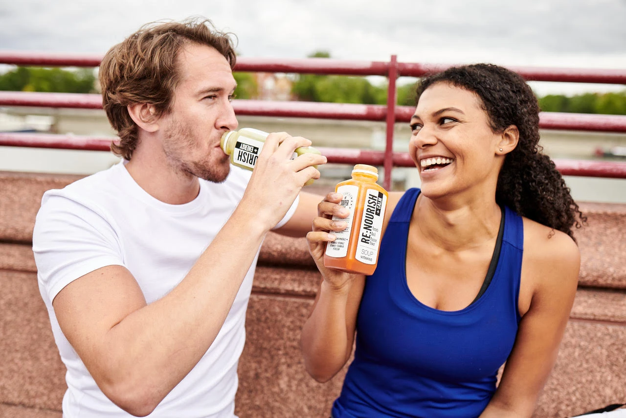“A delicious and nutritious Pea soup with fresh Lemon Juice and Fresh Basil bursting with Souper Tasty nutritional goodness. High in Pea protein and a source of fibre that provide energy as part of a healthy lifestye and balanced diet. Re:Nourish can be heated in the Grab & Go bottle and enjoyed wherever you are. Plant Based. Gluten free. Low Fat. No artificial preservatives, no additives and no added sugar. Made with love in small batches in the UK.”