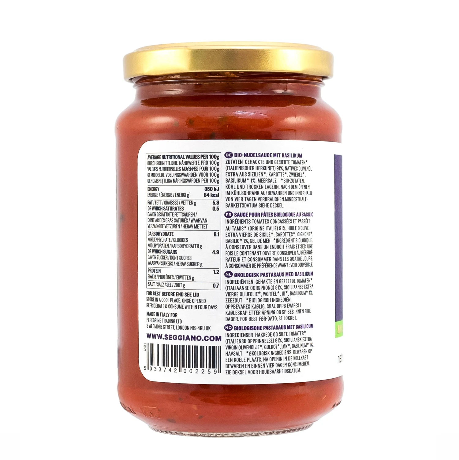 “This is the classic basic sauce for pasta. Fresh basil leaves give aroma to this chunky pasta sauce, made for us in Sicily, using naturally sun sweetened Italian tomatoes and Sicilian extra virgin olive oil from an award winning mill. Quality and provena”
