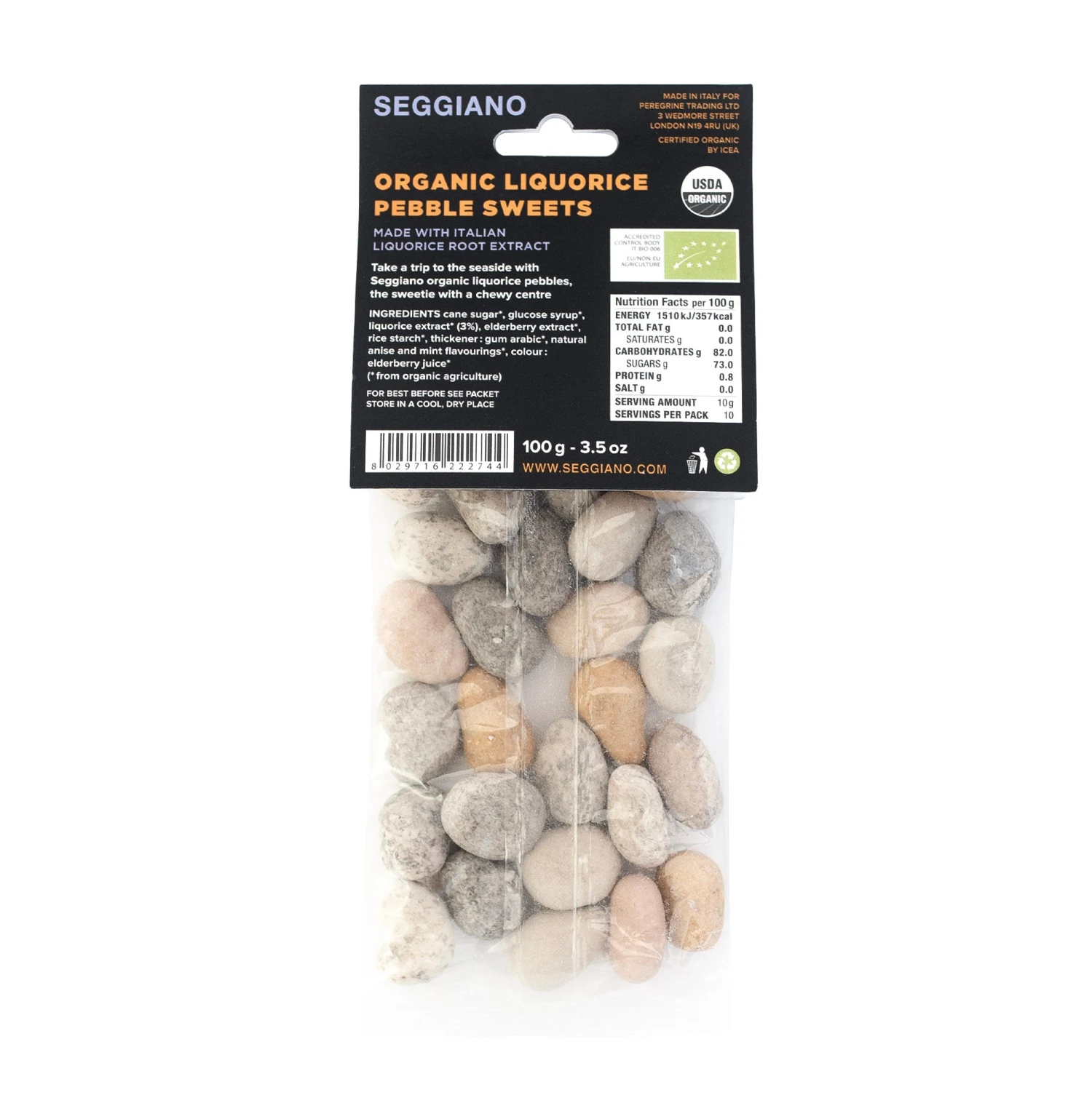 “Pebbles are liquorice sweets with a soft chewy centre, naturally flavoured with anise and mint and encased in a sugar coated crispy shell. They are lightly coloured with elderberry juice to make them look like the little pebbles found on Calabrian beaches. Made from organic Calabrian liquorice root these pebbles are great for sharing and make a lovely gift.”