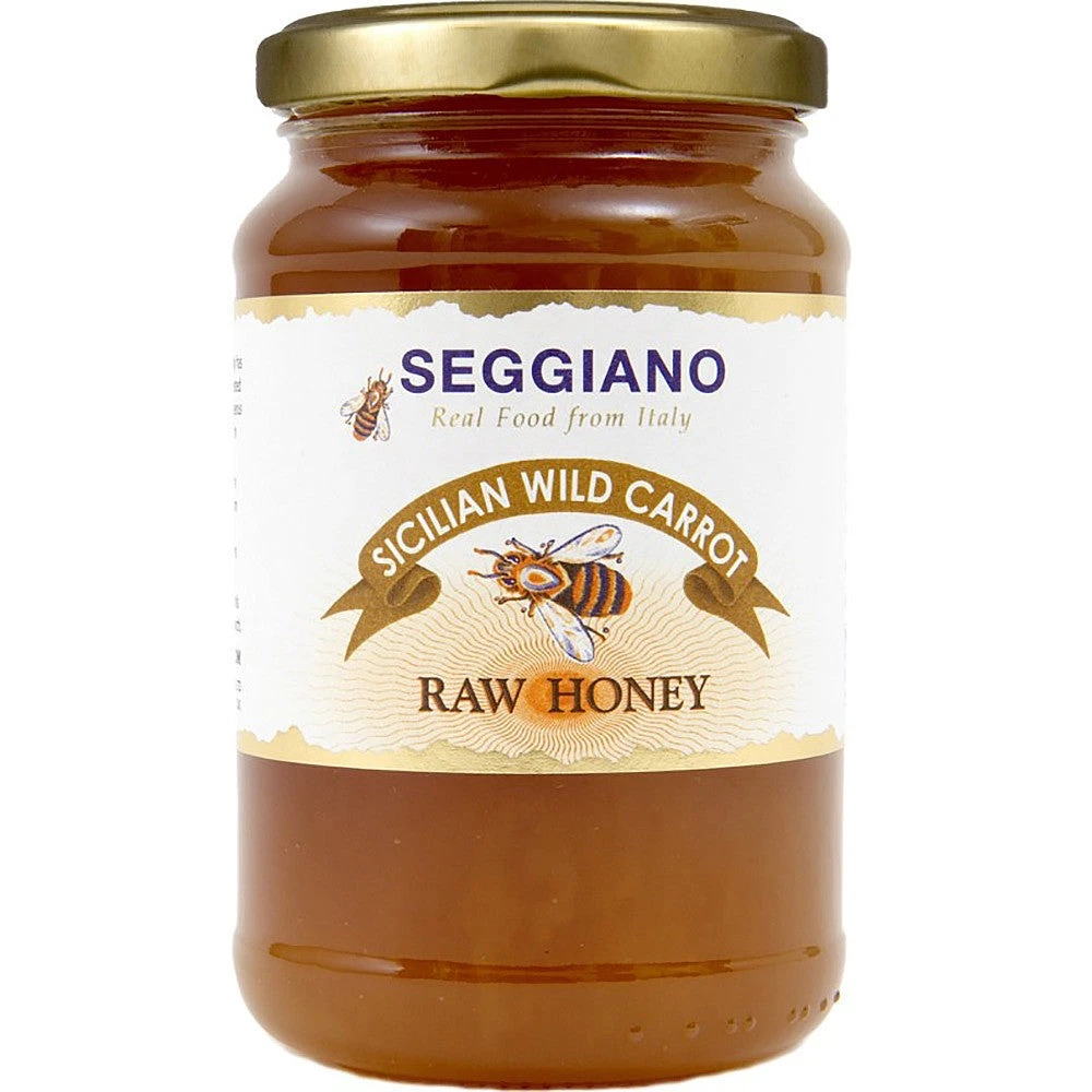“Also known as Queen Anne’s Lace, this luscious pungent honey, is collected by Michele Oliva’s bees from the remote wheat fields of central Sicily. Once the wheat is harvested, the wild carrot flower flourishes and the bees get to work!”
