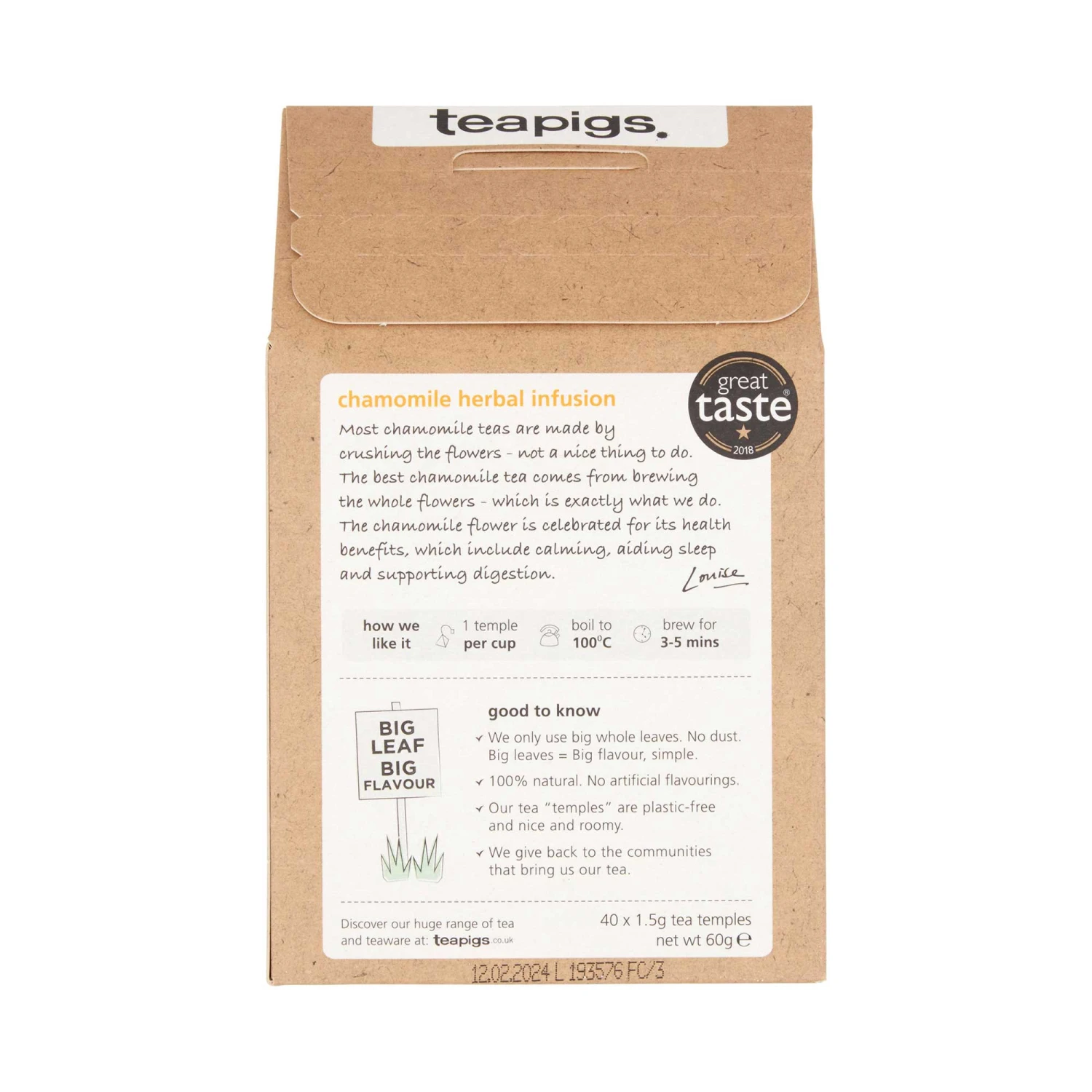 Most chamomile teas are made by crushing the flowers – not a nice thing to do. The best chamomile tea comes from brewing the whole flowers – which is exactly what teapigs do.