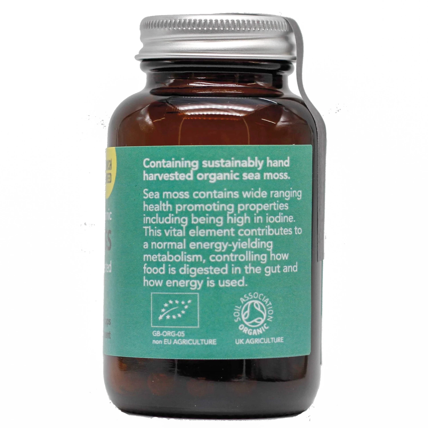 “Organic food supplement. Containing sustainably hand harvested organic sea moss. Sea moss contains wide ranging health promoting properties including being high in iodine. This vital element contributes to a normal energy-yielding metabolism, controlling how food is digested in the gut and how energy is used.”