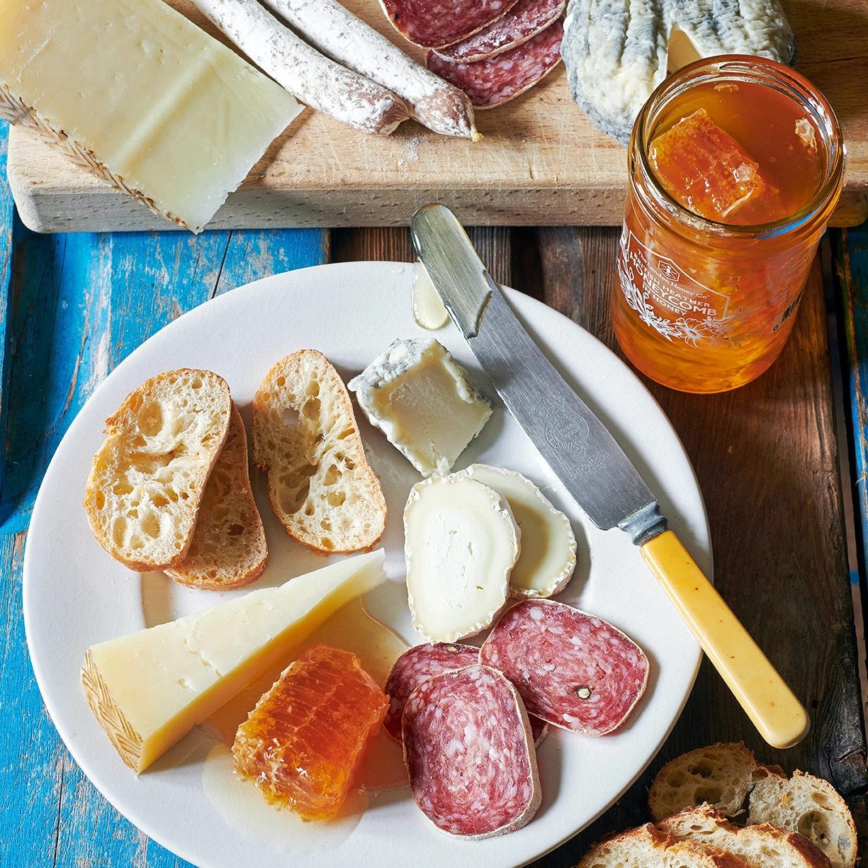 This is a gift to loved ones as much as a breakfast treat for the family. The honey is a gentle and light acacia honey which is ideal for those who love light honeys ; this batch in particular stands out for its typical vanilla flavour notes. The honeycomb is produced from the London Honey Company in one of the apiaries spread all across England. Carefully hand carved and packed in our railway arch in Bermondsey this makes a rather unique product.