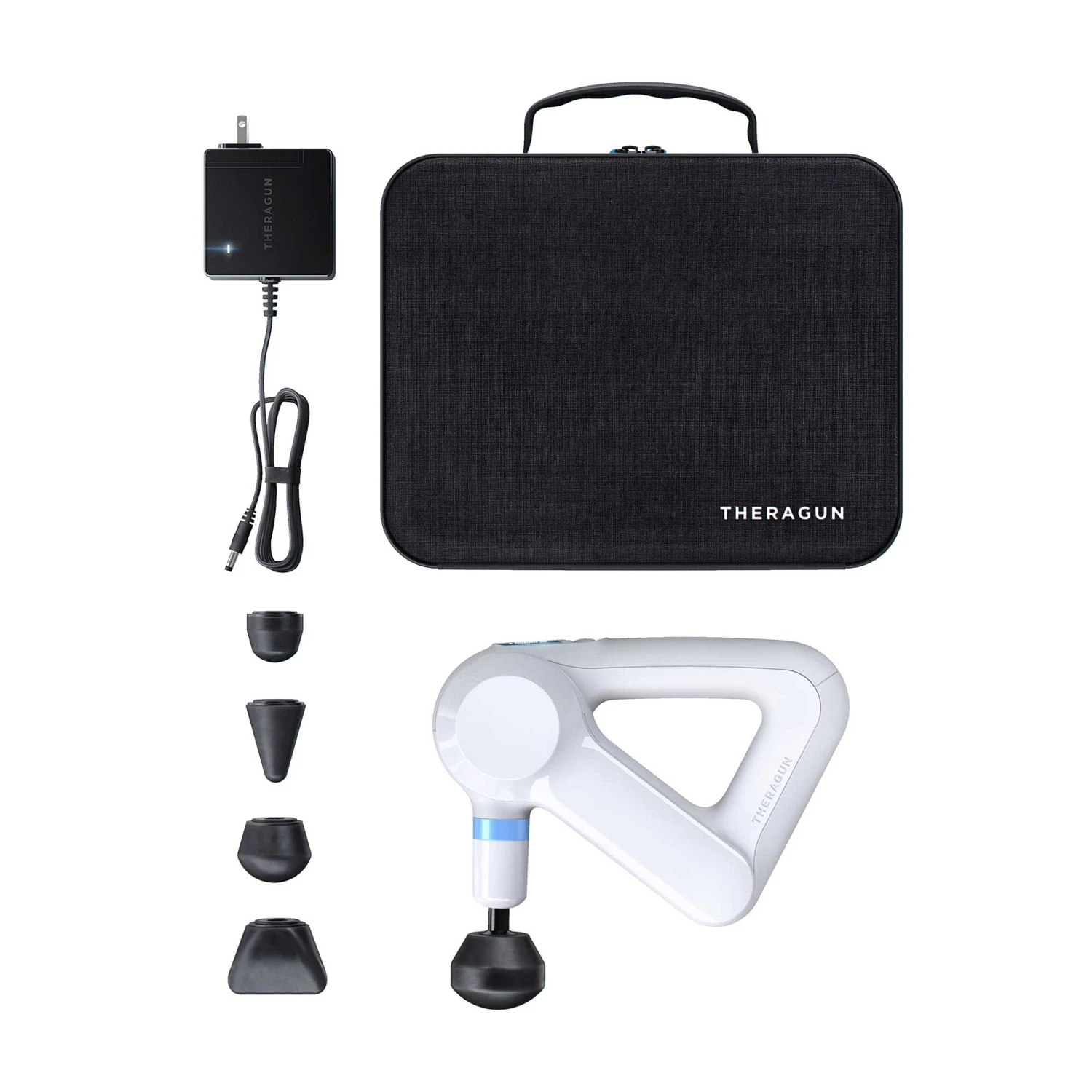 Additional Features: 3 built-in app-guided pre-set routines, OLED screen with force meter, Theragun Triangle ergonomic grip, Customizable speed range (1750-2400 PPMs), Delivers up to 40lbs of no-stall force, Wireless charging enabled, 120 minute battery life, 2-Year Warranty.