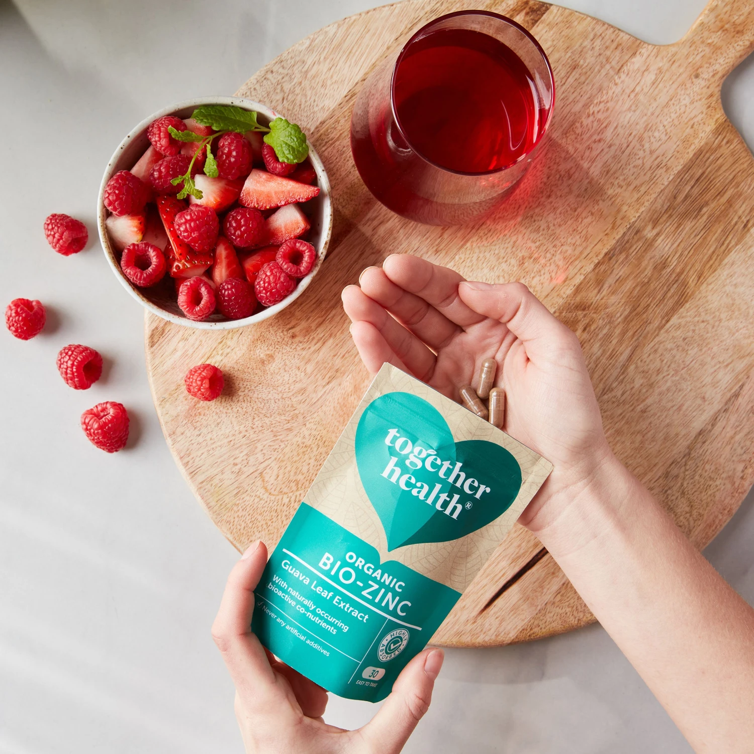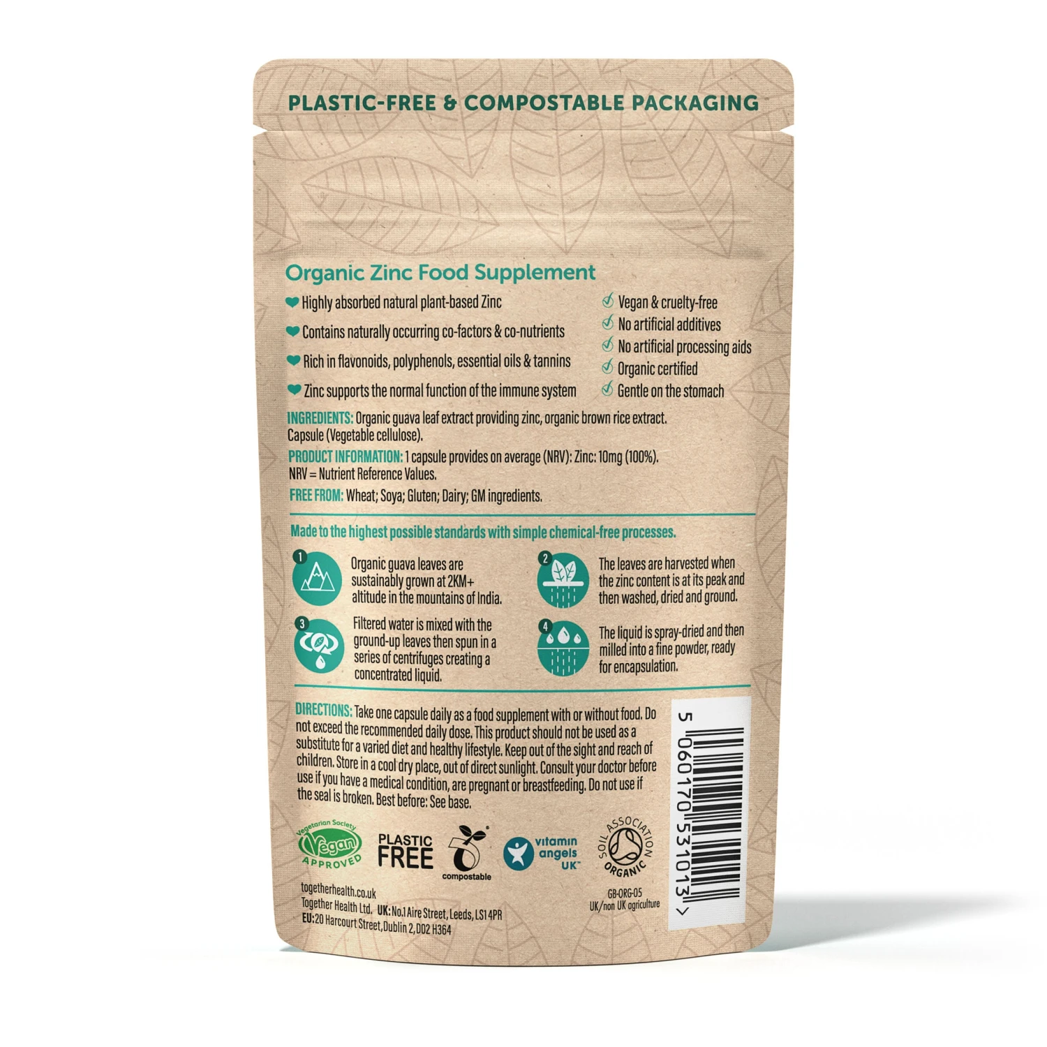 Together Health has formulated the ultimate, plant-based and broad-spectrum Zinc supplement that is made from natural Guava leaves. Guava leaves are rich in zinc and other nutrients that Together Health recognise and so they use minimal processing to ensure the natural ingredients found in Guava leaves are left unharmed and intact, such as tannins, beta-sitosterol, polyphenols, flavonoids, ursolic acid, and essential oils – the combination of these boost the activity of Zinc in the leaves. Zinc is an essential nutrient that is responsible for aiding metabolism, nerve function and digestion – among many other functions. Together Health uses the whole Guava leaf as a source of zinc which ensures that the body easily recognises and absorbs the Zinc, compared to other non-whole sources of Zinc. This supplement guarantees optimal health for everyone as it is free from dairy and gluten and contains no preservatives or additives.