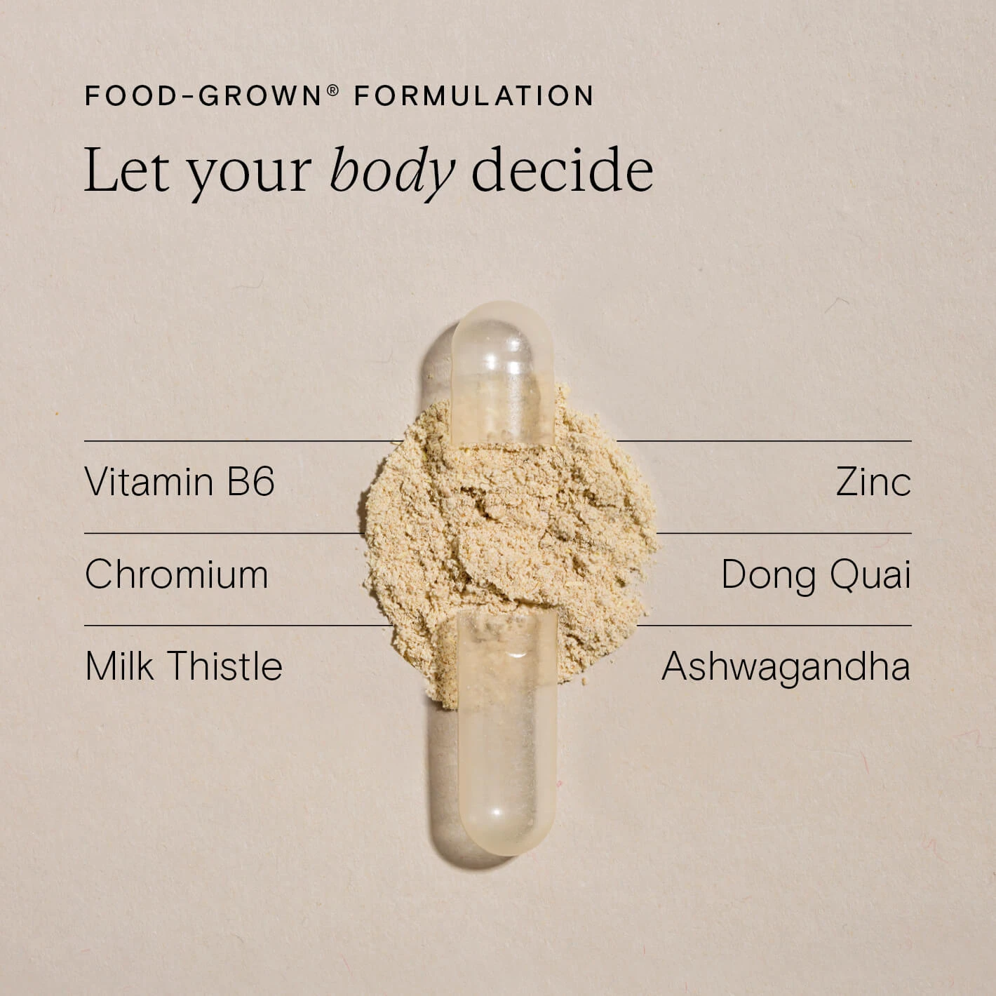 Formulated for hormonal regulation, mental resilience and skin health, Wild Nutrition’s Premenstrual Support is holistically blended with botanicals, minerals and Vitamin B6 to support your monthly cycle.